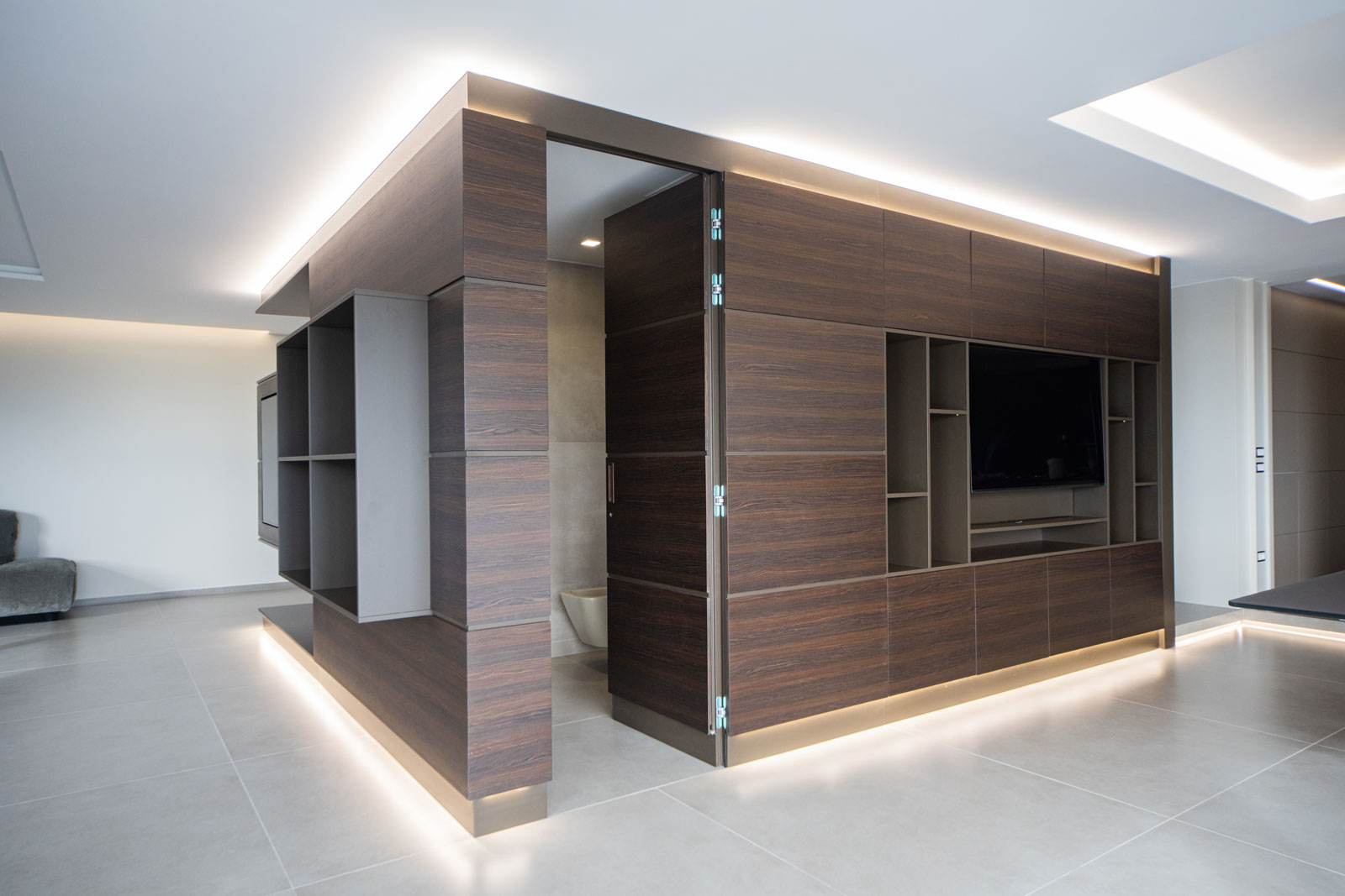 Non semplici complementi, ma dettagli che, inseriti in un concept progettuale unitario, trasformano lo spazio in un sistema integrato di superfici, volumi e aperture. Una proposta pensata per falegnamerie evolute, architetti e interior designer che cercano continuità visiva, precisione esecutiva e valore espressivo anche nei particolari.