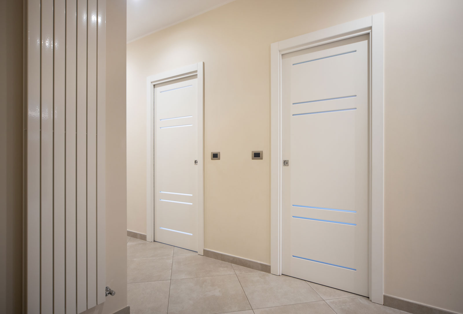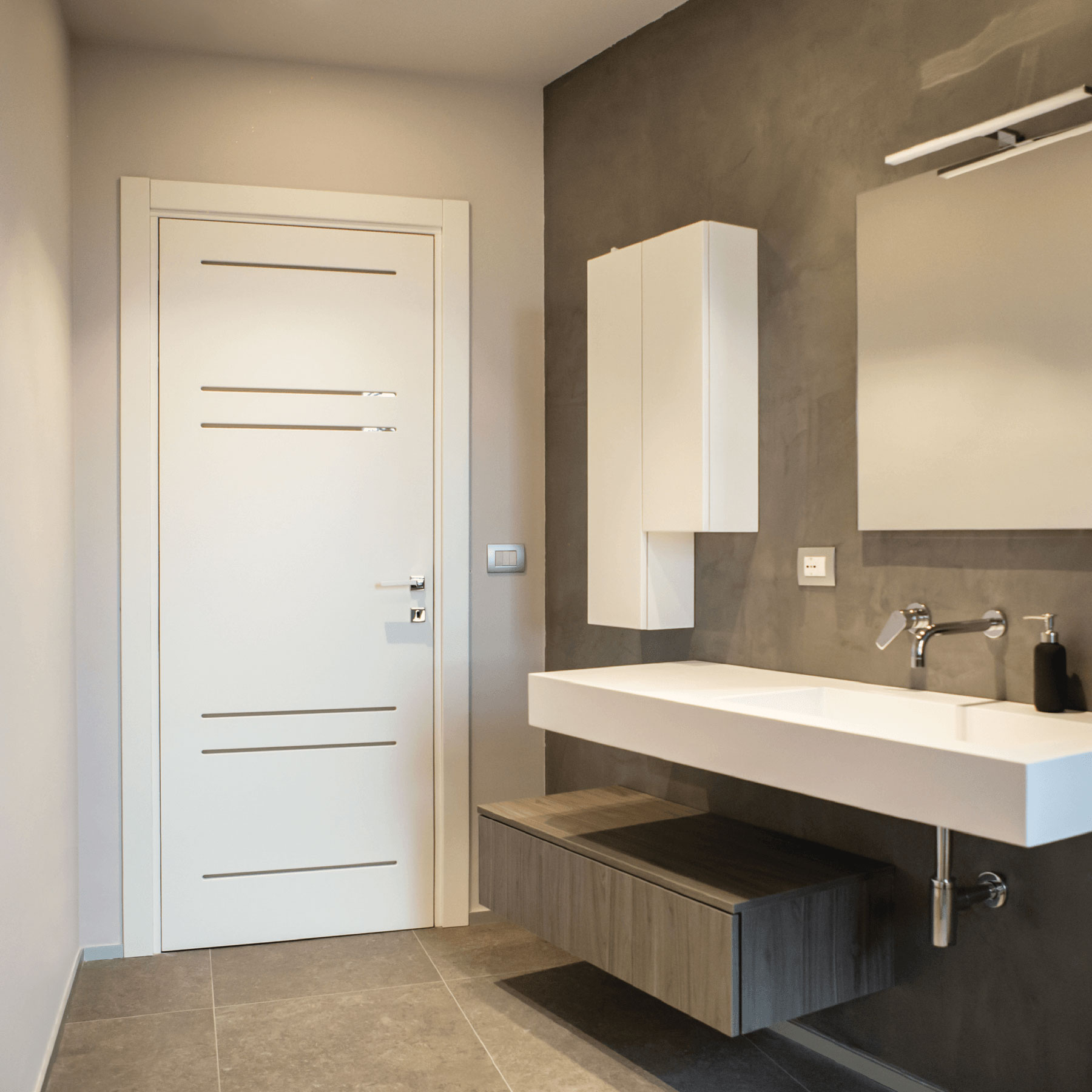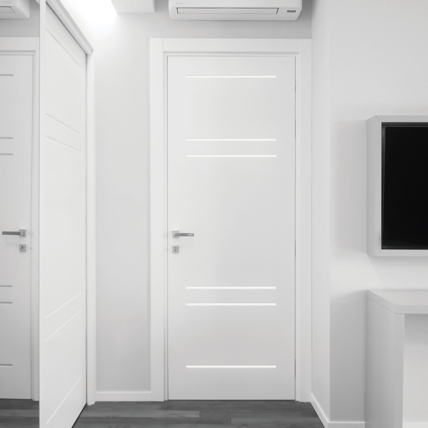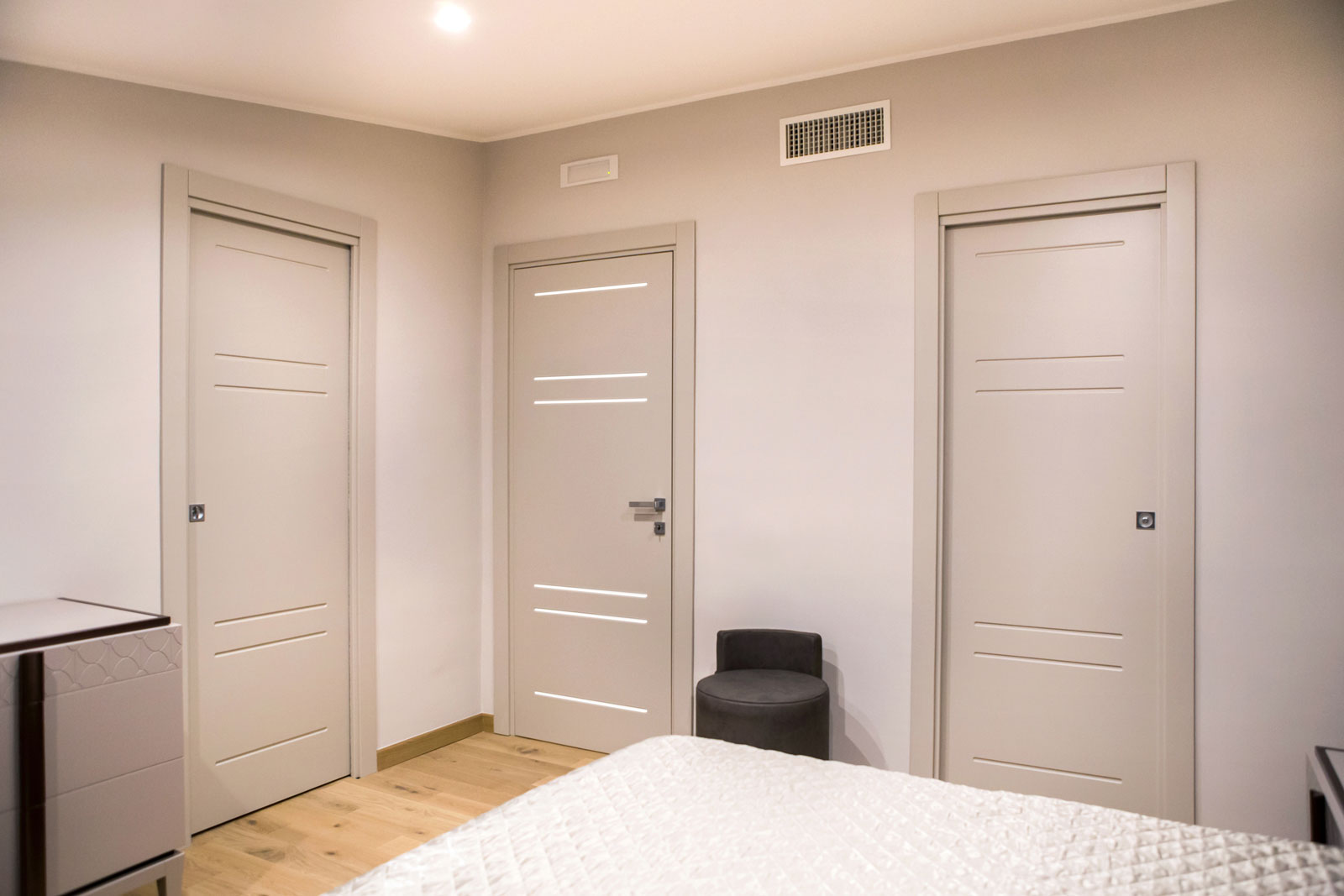 Le caratteristiche esclusive dei pannelli porta sono il risultato di una progettazione appositamente concepita per le diverse tipologie di apertura, evitando la produzione di prodotti standard adattati successivamente. Quest’attenzione, combinata alle lavorazioni in azienda di telai e coprifili, permette di evitare approssimazioni e inestetismi, che spesso caratterizzano altri prodotti presenti sul mercato. Un esempio eclatante è quello delle porte scorrevoli a scomparsa, che presentano differenze di altezza tra vano passaggio e coprifili rispetto alle battenti; inoltre il disegno dell’anta perde la sua geometria e simmetria essendo nascosto dietro al telaietto.