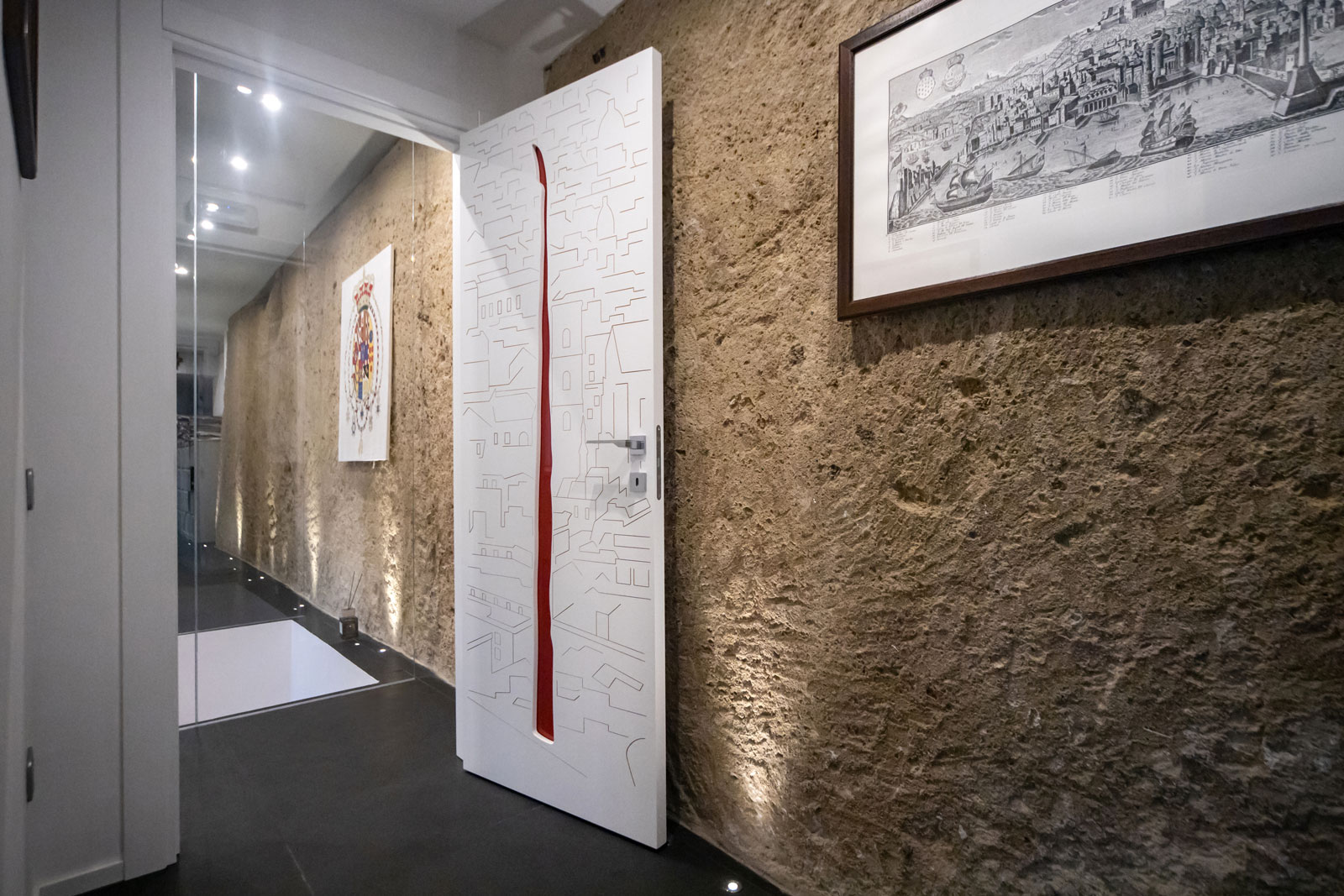 Le Jewel® sono realizzate con un inedito sistema costruttivo coperto da brevetto industriale: due facce speculari, un vetro ad infilo e la luce che attraversa la porta assume qualsiasi forma desideriamo, diventando un suggestivo pezzo di design e al contempo elemento di grande valore artistico e scenografico.