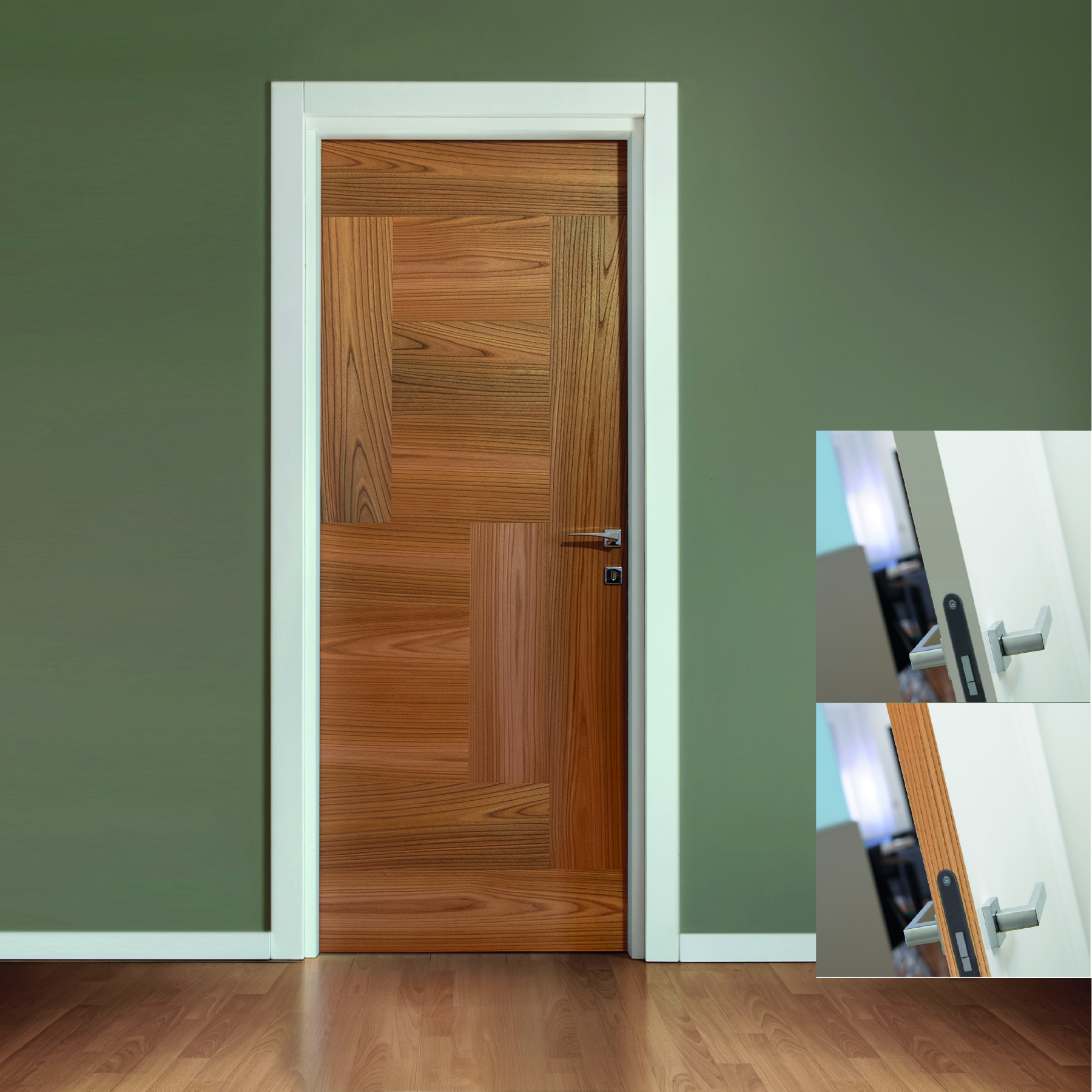 Le caratteristiche esclusive dei pannelli porta sono il risultato di una progettazione appositamente concepita per le diverse tipologie di apertura, evitando la produzione di prodotti standard adattati successivamente. Quest’attenzione, combinata alle lavorazioni in azienda di telai e coprifili, permette di evitare approssimazioni e inestetismi, che spesso caratterizzano altri prodotti presenti sul mercato. Un esempio eclatante è quello delle porte scorrevoli a scomparsa, che presentano differenze di altezza tra vano passaggio e coprifili rispetto alle battenti; inoltre il disegno dell’anta perde la sua geometria e simmetria essendo nascosto dietro al telaietto.