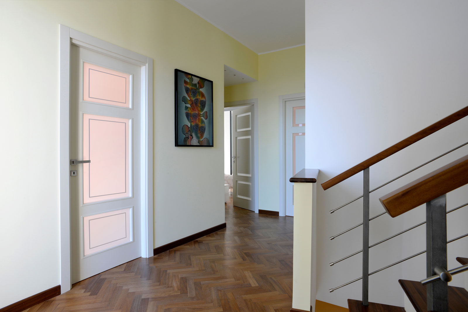 Le caratteristiche esclusive dei pannelli porta sono il risultato di una progettazione appositamente concepita per le diverse tipologie di apertura, evitando la produzione di prodotti standard adattati successivamente. Quest’attenzione, combinata alle lavorazioni in azienda di telai e coprifili, permette di evitare approssimazioni e inestetismi, che spesso caratterizzano altri prodotti presenti sul mercato. Un esempio eclatante è quello delle porte scorrevoli a scomparsa, che presentano differenze di altezza tra vano passaggio e coprifili rispetto alle battenti; inoltre il disegno dell’anta perde la sua geometria e simmetria essendo nascosto dietro al telaietto.