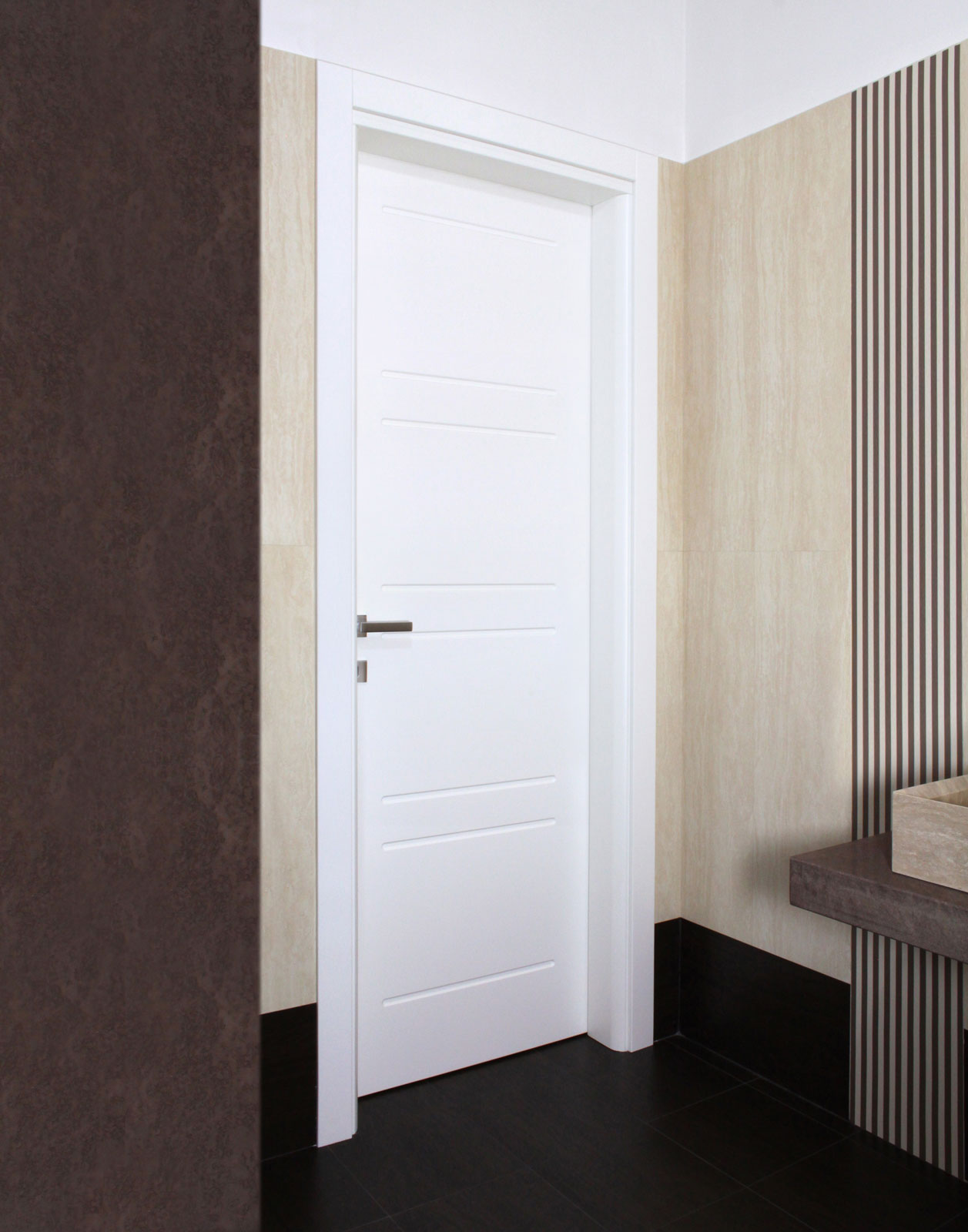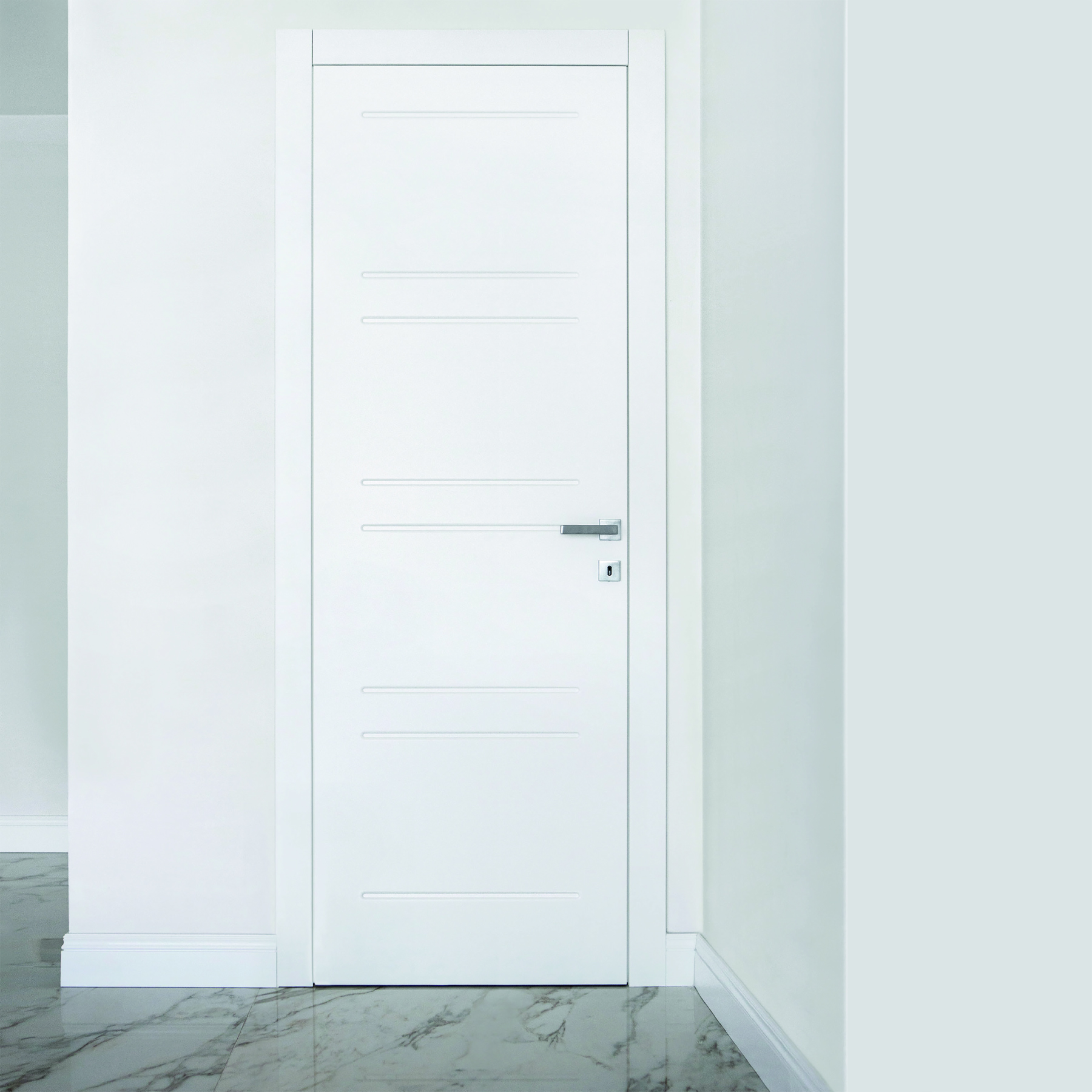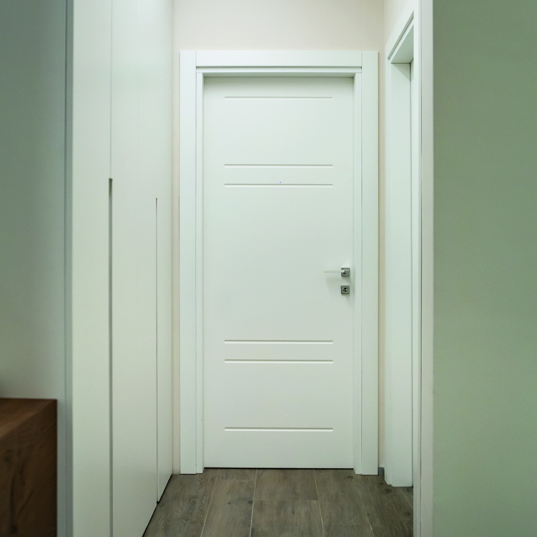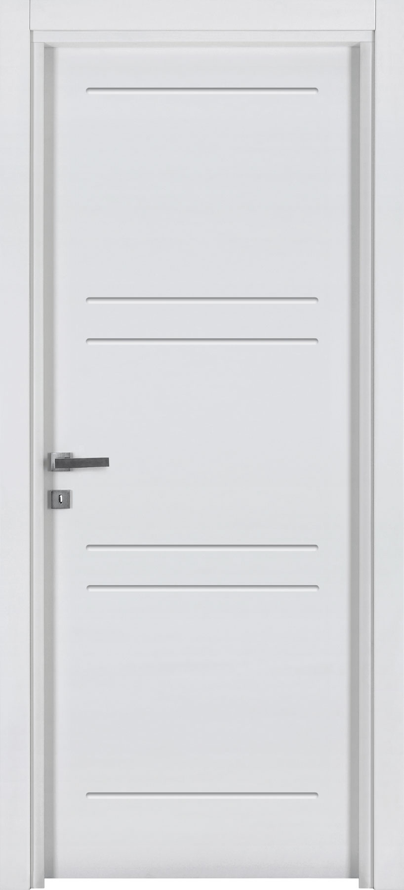 Le caratteristiche esclusive dei pannelli porta sono il risultato di una progettazione appositamente concepita per le diverse tipologie di apertura, evitando la produzione di prodotti standard adattati successivamente. Quest’attenzione, combinata alle lavorazioni in azienda di telai e coprifili, permette di evitare approssimazioni e inestetismi, che spesso caratterizzano altri prodotti presenti sul mercato. Un esempio eclatante è quello delle porte scorrevoli a scomparsa, che presentano differenze di altezza tra vano passaggio e coprifili rispetto alle battenti; inoltre il disegno dell’anta perde la sua geometria e simmetria essendo nascosto dietro al telaietto.