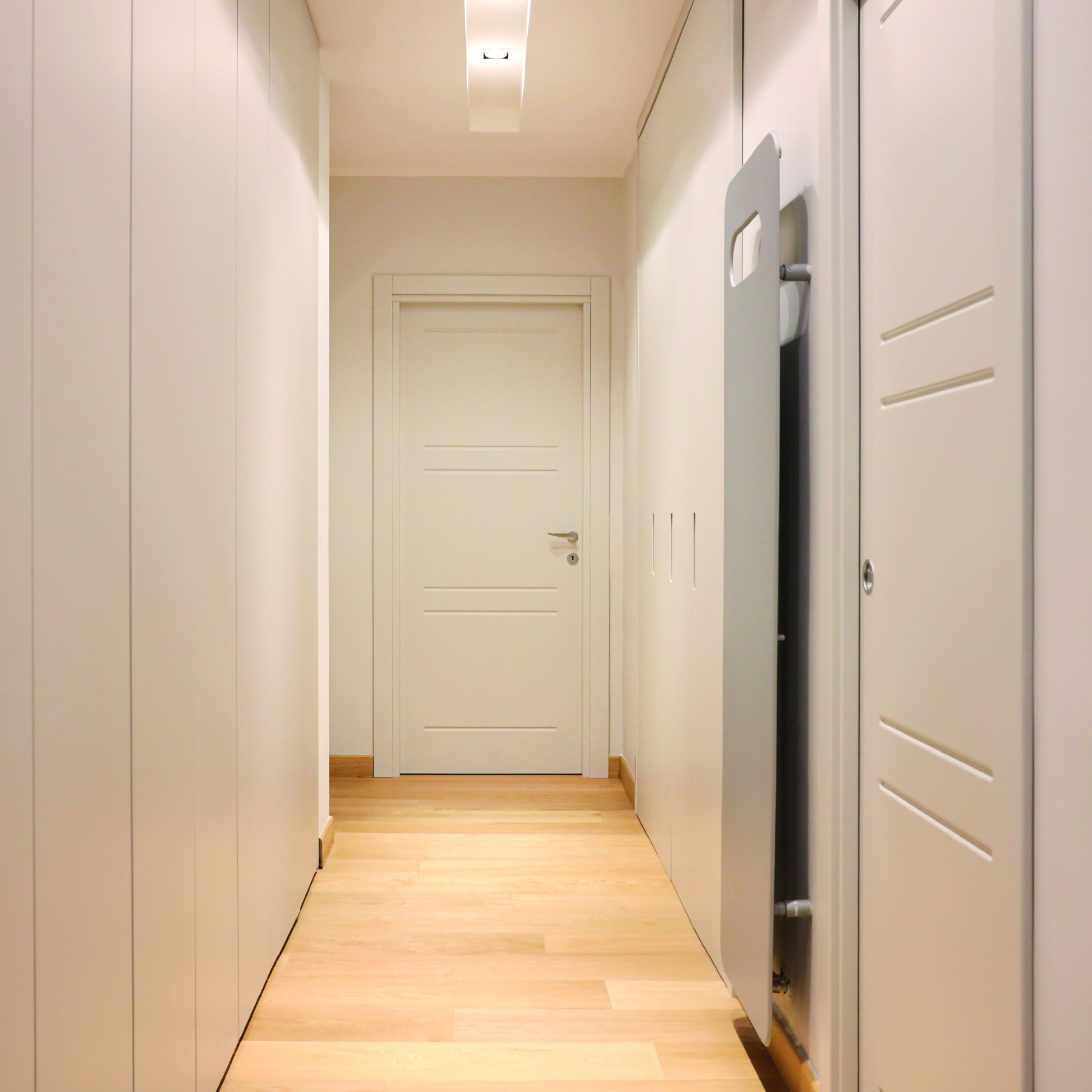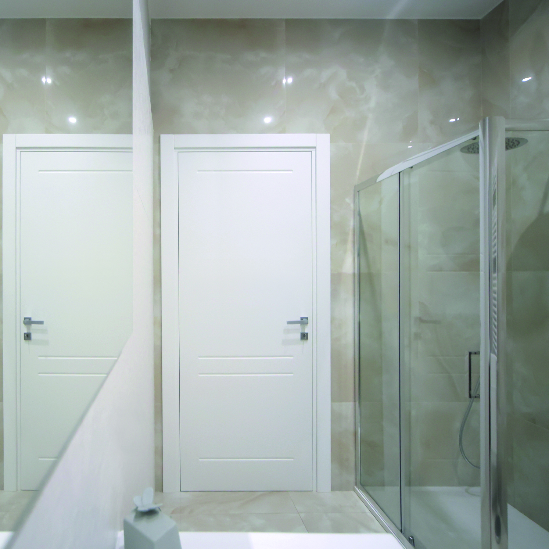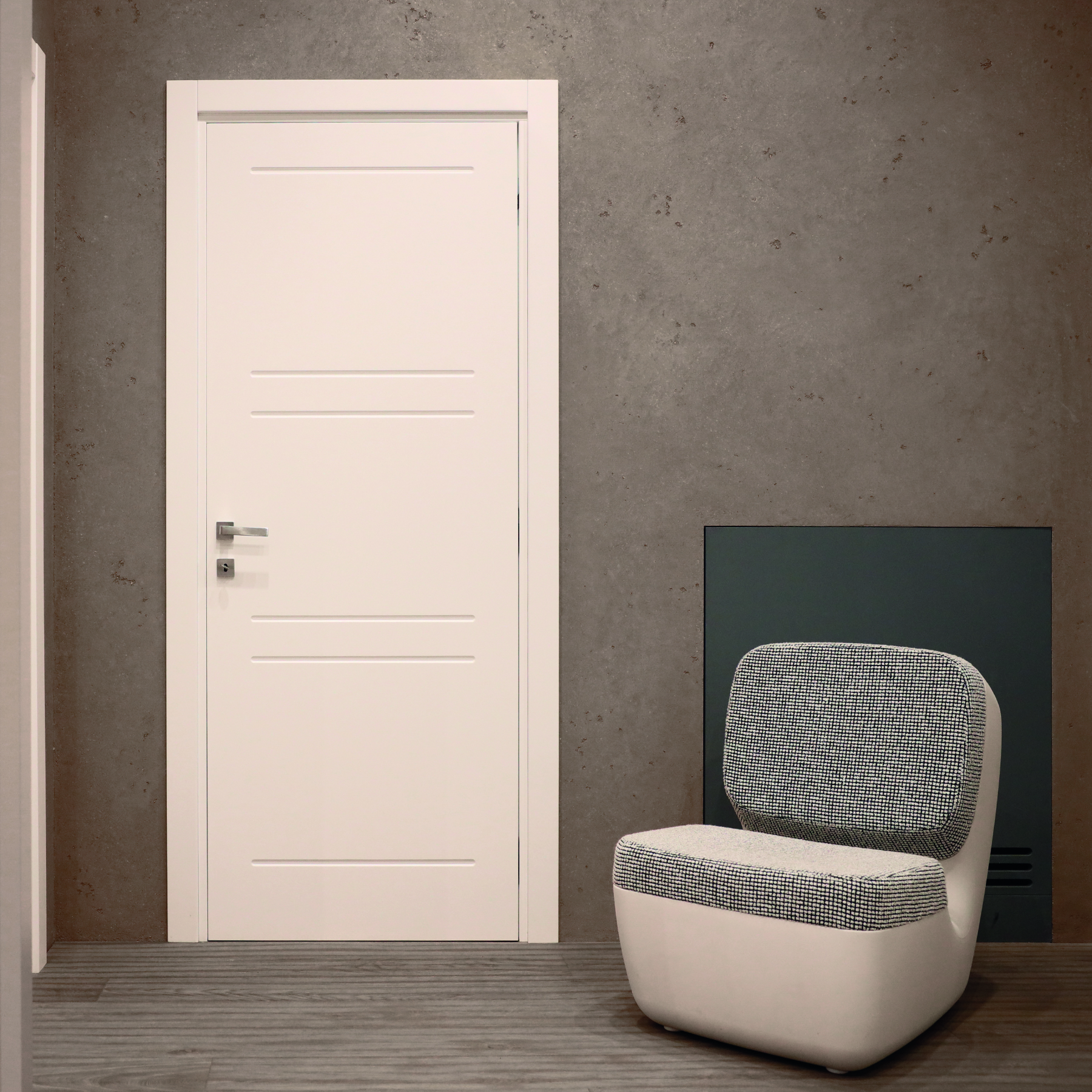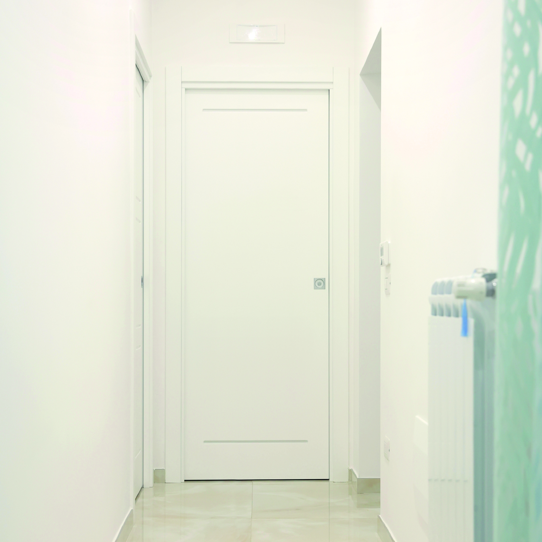 Le caratteristiche esclusive dei pannelli porta sono il risultato di una progettazione appositamente concepita per le diverse tipologie di apertura, evitando la produzione di prodotti standard adattati successivamente. Quest’attenzione, combinata alle lavorazioni in azienda di telai e coprifili, permette di evitare approssimazioni e inestetismi, che spesso caratterizzano altri prodotti presenti sul mercato. Un esempio eclatante è quello delle porte scorrevoli a scomparsa, che presentano differenze di altezza tra vano passaggio e coprifili rispetto alle battenti; inoltre il disegno dell’anta perde la sua geometria e simmetria essendo nascosto dietro al telaietto.