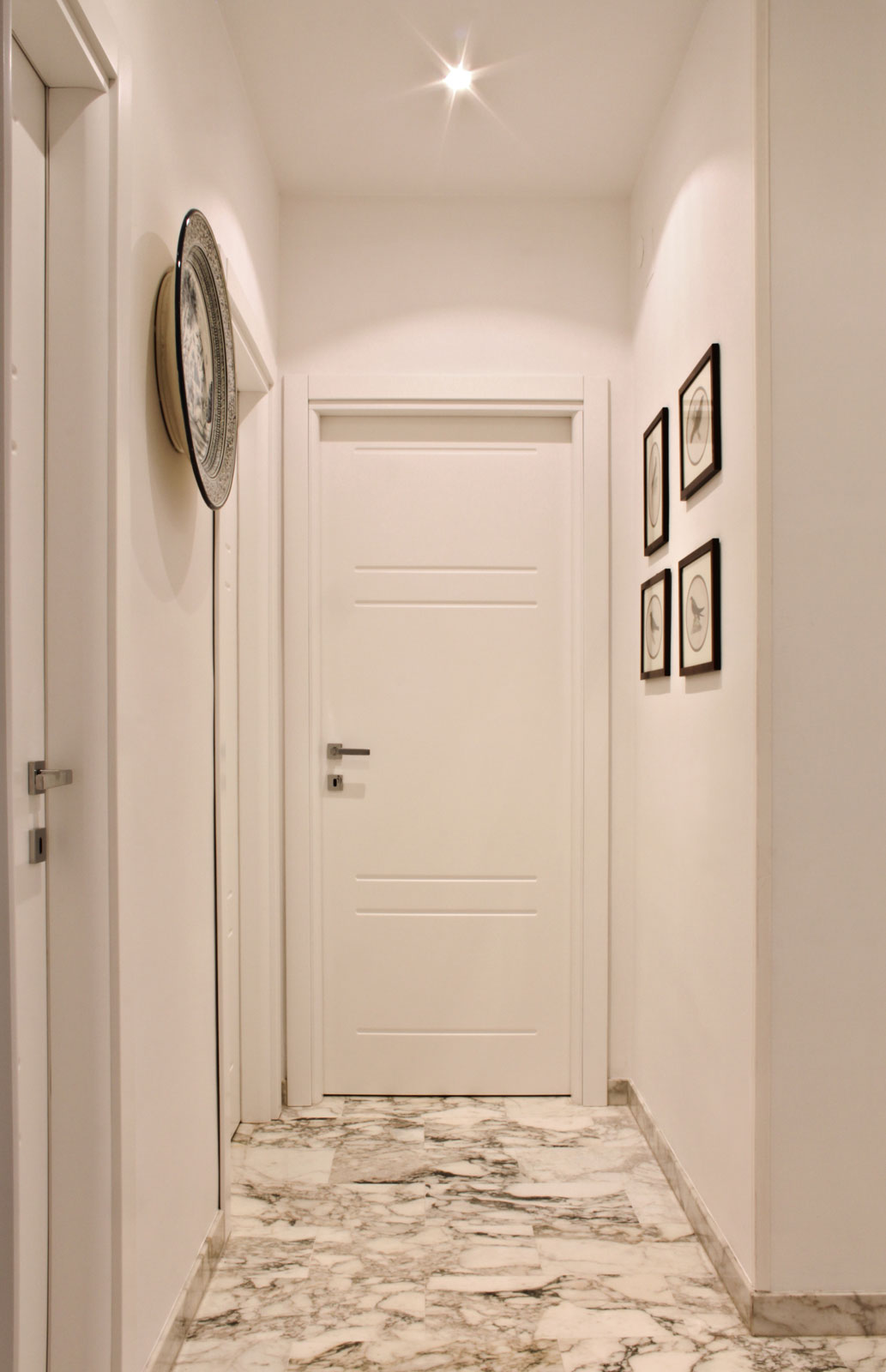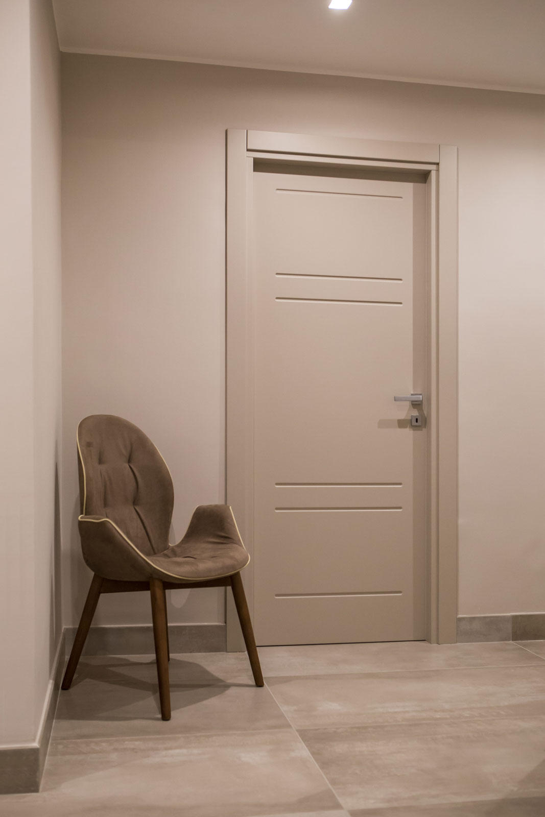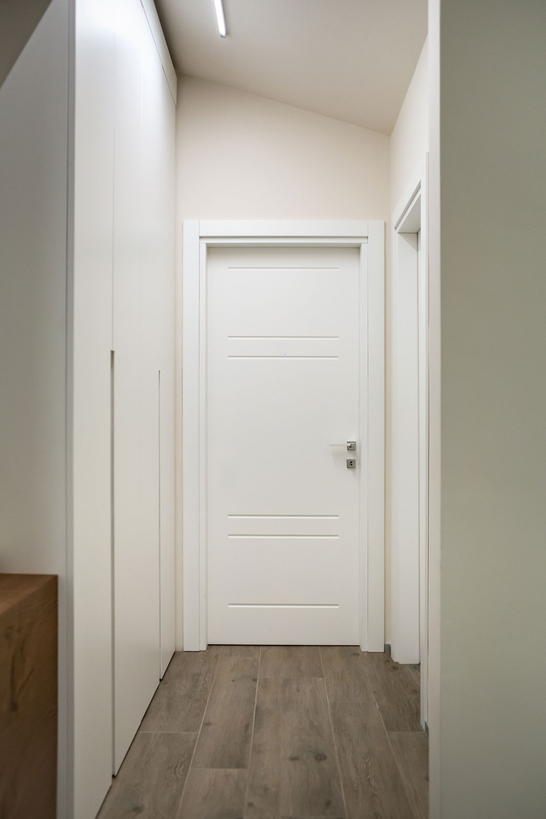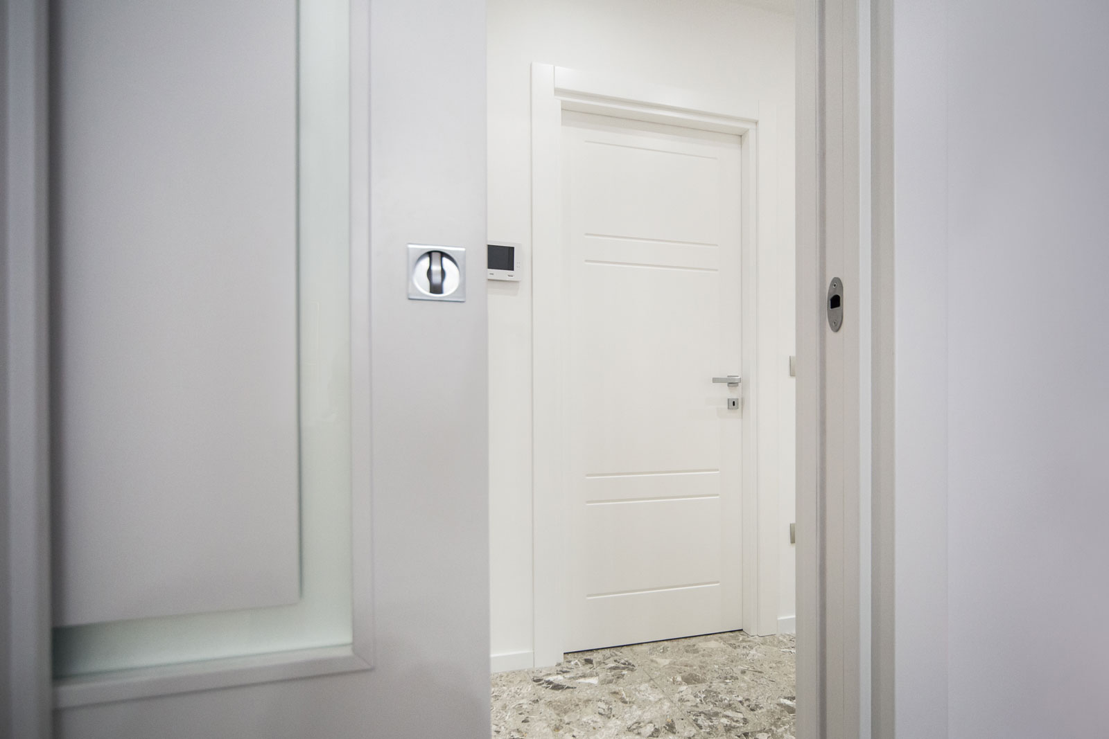 Le caratteristiche esclusive dei pannelli porta sono il risultato di una progettazione appositamente concepita per le diverse tipologie di apertura, evitando la produzione di prodotti standard adattati successivamente. Quest’attenzione, combinata alle lavorazioni in azienda di telai e coprifili, permette di evitare approssimazioni e inestetismi, che spesso caratterizzano altri prodotti presenti sul mercato. Un esempio eclatante è quello delle porte scorrevoli a scomparsa, che presentano differenze di altezza tra vano passaggio e coprifili rispetto alle battenti; inoltre il disegno dell’anta perde la sua geometria e simmetria essendo nascosto dietro al telaietto.